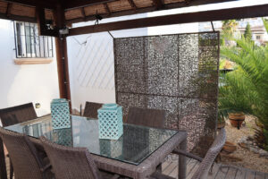 Ready to move into this detached 2 bedroom, 2 bathroom villa is located on the sought after urbanisation of Puerta del Valle on the outskirts of Murla.A long drive,way with parking for 4 vehicles leads to the front of the property where a few steps lead you to a lovely covered naya with great views to the Coll de Rates and the main entrance to the villa.Rejas and double fully glazed French doors open into the bright and spacious lounge and dining room. The lounge area has a feature fireplace with log burner, triple aspect double glazed windows and a lovely beamed ceiling as well as hot and cold air conditioning. The fully fitted kitchen is adjacent to the dining area with ample white wall and base units and black granite effect worktops with breakfast bar. From the dining area a door leads to the inner hallway with access to a storage cupboard; double bedroom 1 with ceiling fan and built in wardrobes; the family bathroom with corner shower, basin, WC and electric wall heater and the master bedroom with built in wardrobes, hot and cold air conditioning, en-suite bathroom with bath with shower over, basin set in a modern vanity and WC and double french doors which lead out to the private garden area.A door from the hallway takes you to the gardens at the rear of the property with a lovely covered pergola with decked floor - a great space for relaxing and entertaining with family and friends. A pathway leads around the side of the property with a BBQ area and further covered pergola with tiled floor and sun blinds. The private gardens are beautifully maintained, low maintenance and planted with mature typically Mediterranean shrubs including bird of paradise, oleander, plumbago, bamboo and a stunning monkey puzzle tree.The property benefits from a large underbuild - ideal for storage but which could also, with the correct permission being obtained, be increased in size.This lovely detached property has been well maintained and is ready to move into and enjoy. It is within walking distance to a local restaurant and just a 10 minute drive to the larger towns of both Jalon and Orba with a wide choice of local amenities including supermarkets, bars, restaurants and independent shops and bodegas as well as schools, doctors, dentists and pharmacies.The beautiful beaches at all of Calpe, Denia, Javea and Moraira can be reached within half an hour and the airports at both of Alicante and Valencia are with an hour and a half easy motorway drive.A great opportunity if you are looking for a property in this beautiful part of the Northern Costa Blanca abd a super property which would make a wonderful family home or holiday home. The Property Team know that buying a property in Spain is a huge decision but with our local knowledge we can guide you through the process and answer any questions or concerns you may have. We are always contactable whenever you need us and if no properties on our own website meet fully with your requirements just let us know what you are looking for and we will search for the right property for you.