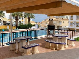 This fantastic one bedroom corner property is ideal as a holiday bolt hole, it comes fully furnished. You will find it on the Las Carolinas community in El Galan. The property has open plan living are with an open plan kitchette. There is a large double bedroom and a separate shower room, to the front is a terrace area, the front of the property overlooks the manicured community gardens. The property is on a secure gated community that has a very large community pool area. El Galán is recognised by many Costa Blanca residents as being a more sought after area, with properties always in high demand. El Galán is a quiet residential area of Villamartin, and so all properties are within close proximity to the fabulous retail and leisure facilities of Villamartin Plaza which plays host to some of the area’s best restaurants, with culinary delights from all corners of the world offered under one roof; you can take your pick of Indian, Mexican, Chinese and even home comforts like fish and chips. The beaches of Playa Flamenca, La Zenia, Cabo Roig and Campoamor are only 10 minutes drive in a car. The area offers some of the best water sports available including, jet skis, pedaloes and parasailing.