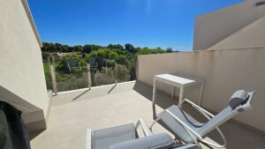 Penthouse with fantastic views of Lo Romero Golf. Modern Ground-Floor Penthouse with Panoramic Views over Lo Romero Golf – Pilar de la HoradadaLooking for a home with golf course views? This modern and stylish penthouse at the popular Lo Romero Golf Resort offers the perfect blend of peace, comfort, and luxury outdoor living under the Spanish sun.Why this penthouse stands out:2 spacious bedrooms and 2 modern bathrooms (one en-suite)Large south-facing balcony and a generous private rooftop terrace – sunshine all day!Modern open-plan kitchen with all essential appliancesIntegrated air conditioning for both cooling and heatingPrivate parking space right at the doorEnjoy your morning coffee in the sun on your spacious rooftop terrace with stunning panoramic views over the green fairways and the communal pool.Whether you're looking for a permanent residence, a holiday home, or a solid investment with rental potential, this penthouse at Lo Romero Golf has it all!