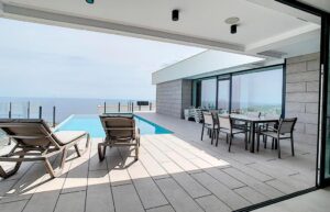 Modern villa with spectacular sea views located in the exclusive residential area of Cumbre del Sol, very close to Moraira and Jávea. The area has all the necessary daily amenities, such as supermarkets, pharmacy, school, sports facilities, and restaurants. The nearby cities of Moraira and Jávea complement the offer of services, making this location an ideal place to live all year round or to spend on holidays.Villa, ready to move into, on a large plot of 912m2, and a construction size of more than 200m2. The villa is distributed on two floors, with 4 bedrooms (2 en-suite). The most remarkable thing about this property are the impressive sea views from most of the rooms and especially from the terrace and pool area.Among other qualities, the villa is sold fully furnished and has ducted hot/cold air conditioning, underfloor heating on both floors, two fireplaces, and a pergola covered parking area in the premises.