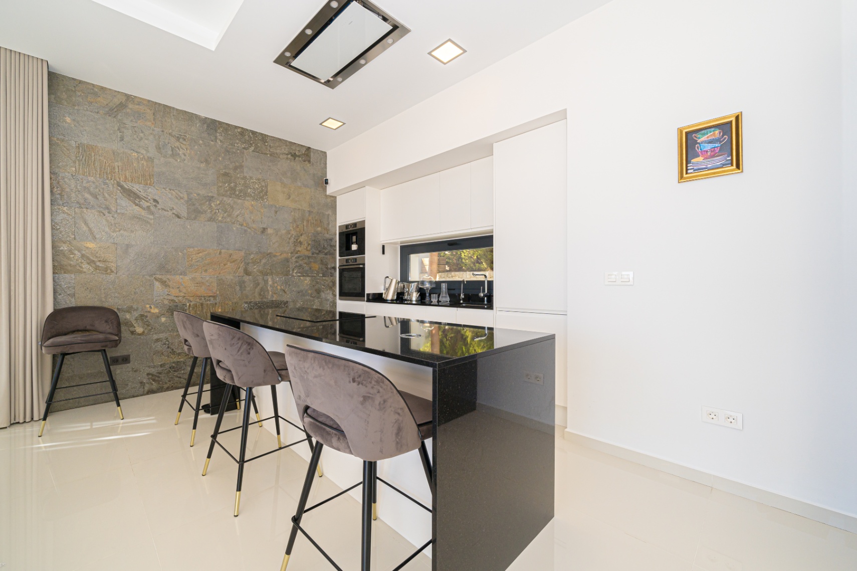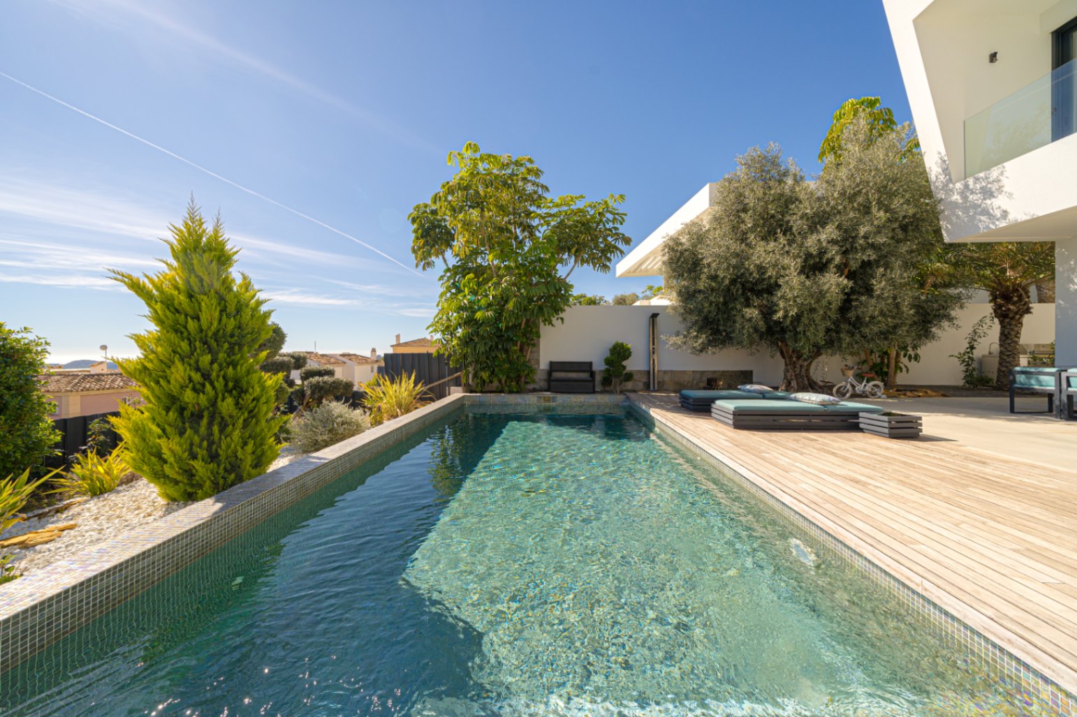 Description of the Chalet in FinestratDiscover a luxurious and comfortable retreat in this stunning chalet located in the charming Finestrat, in the province of Alicante. With a construction of 635 m² on a private plot of 704 m², this property is the epitome of elegance and well-being.Spacious LayoutThis chalet features 5 bedrooms and 6 bathrooms, providing generous and comfortable space for large families or those who enjoy hosting friends. The layout is designed to maximize natural light, creating cozy and bright environments in every corner.Modern AmenitiesEquipped with centralized air conditioning and heating, this home is set up to provide an ideal climate year-round. The open-plan kitchen is a delight for food lovers, promoting togetherness while cooking delicious meals.Outdoor SpacesThe exterior of the property includes a private pool to enjoy on warm summer days and a beautiful garden that surrounds the house, perfect for relaxing or hosting family gatherings. Additionally, the chalet offers a balcony and an open terrace, where one can enjoy the stunning views and the characteristic sun of the region.Security and ComfortSecurity is a priority; therefore, this chalet is equipped with an alarm system, security door, and double glazing. The property also offers a storage room for additional storage and a parking space that enhances the functionality of the home.Energy CertificationsCommitted to the environment, this chalet has energy certifications of class A, both in energy efficiency and emissions, demonstrating its efficiency and environmental responsibility.Prime LocationSituated in an area with good transport links, this chalet not only provides a peaceful retreat but also easy access to local services, shops, and attractions of vibrant Finestrat. Whether you seek adventure or a place to relax, this location has it all.This chalet in Finestrat is more than just a property; it is a lifestyle that invites you to enjoy the beauty of Alicante every day. A home filled with all the details you could desire, waiting for you with open arms.