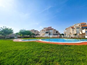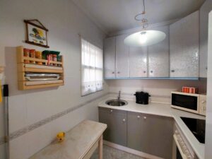 Top floor bungalow, located in the sought-after area of Playa Flamenca.. . With two double bedrooms, a bathroom with a renovated shower, and an open-plan kitchen leading to the bright living-dining room. Enjoy the sun all day long on your south-facing porch, ideal for outdoor breakfasts, and relax on your private solarium with sea views. . . In addition, it has new air conditioning and a new refrigerator, renovated windows and is very well maintained. The property includes a storage space, perfect for storing beach equipment, terrace furniture or anything else you may need (some neighbours have closed it off as a storage room).. . This property offers the perfect space to enjoy your holidays by the sea. . . Located in a well-maintained gated community with a communal swimming pool, gardens and several outdoor parking areas, it offers security, tranquillity and an excellent quality of life.. . All this just a few minutes' drive from the beach, a short walk from the Municipal Sports Centre, and very close to the popular La Zenia Boulevard shopping centre. In addition, supermarkets, bars, restaurants and other services are within walking distance, in a quiet but well-connected residential area.