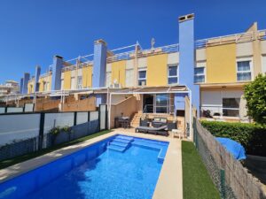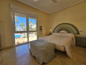 Rare opportunity to purchase this spectacular property in Calas de Campoamor with open sea views, just 100m from the beach. This 3 bedroom, 3 bathroom villa boasts a heated saline swimming pool installed less than 2 years ago along with a private solarium and underground garage and storage room. Located in a gated complex this property has been maintained to a very high standard with a sleek brand new kitchen and very attractive marble flooring throughout. On the ground floor there is fantastic living and dining room with floor to ceiling patio doors leading outside the the tiled terrace and swimming pool which has been finished with artificial grass. On the first floor you with find the master bedroom that enjoys sea views and en-suite bathroom along with two double guest bedrooms and the family bathroom all with views towards the sea or the communal swimming pool. On the top floor you will find the fabulous solarium with more stunning views of the Mediterranean and down towards the Mar Menor. The villa has an underground garage and storage accessed via an internal staircase, where you can conveniently access your car and exit the complex via electric doors. The house forms part of a well maintained complex where home owners also have use of the huge communal swimming pool and pretty garden. The property is sold as seen, fully furnished with many, many extras including independent laundry room, new air-conditioning units in the bedrooms, brand new kitchen appliances, non-chemical saline heated pool system, automated garage doors, intercom entry system, open fireplace in the living room and purpose built barbecue on the main terrace.Calas de Campoamor is a sought after location with all amenities within a few minutes walking distance including an international supermarket and bakery, 24hr pharmacy and medical centre along with a vast array of restaurants, cocktail and tapas bars.