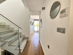 Step into modern coastal living with this exceptional 4 bedroom, 4 bathroom semi-detached home in the sought-after Torre de la Horadada. Located just 800 metres from pristine beaches, this property offers a rare combination of style, convenience, and Mediterranean charm. A short stroll takes you to the vibrant Nueva Plaza, filled with bars, restaurants, and local services, while the well-known main plaza is just two minutes away. For golf lovers, Lo Romero Golf Course is only a 15-minute drive.Sold fully furnished and ready to move into, this home is designed for effortless living. The open, light-filled spaces lead onto a large wraparound terrace with all-day sun, a private solarium with stunning sea views, pristine communal pool that can be accessed directly from the street — perfect for coming back from the beach and enjoying a swim without entering the house.. Every detail has been considered, from electric blinds with an automated security system in every room, to air conditioning throughout, built-in wardrobes, and two beautifully appointed en-suite bedrooms. The bathrooms feature underfloor heating for a touch of luxury all year round.With its unbeatable location just metres from the beach, top-quality finishes, and thoughtful design, this property is everything you need to enjoy your dream life on the Costa Blanca.