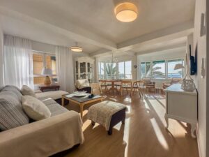 For sale this large apartment with stunning sea views. On the first line of El Cura beach, in Torrevieja. It is the busiest beach with a promenade, where there are natural sea pools. The building has a concierge and is guarded 24 hours a day. Located a few meters from the pier where you can walk and enjoy walks surrounded by the sea. It has 3 bedrooms (two doubles with large 160x200 beds and large storage compartments and 1 bunk bed in the smallest room), 2 bathrooms with large showers, fully equipped kitchenette with island all brand new appliances, large laundry room. , the apartment is newly renovated (electrical installations, water and sewage completely changed. Hot and cold air conditioners installed in each bedroom, it has TV and Internet, brand new high-quality furniture. 2 apartments on each floor, with 2 independent elevators. Great opportunity to get a luxurious apartment in a unique area with unbeatable views. Shall we schedule your visit?