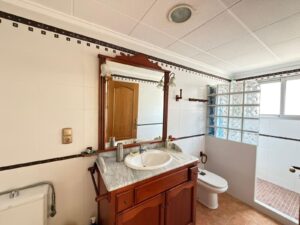 Przestronny apartament z 3 sypialniami i tarasem przy plaży w Torrevieja W cichym budynku położonym zaledwie 100 metrów od morza znajduje się ten jasny apartament z trzema sypialniami i dwiema łazienkami, z których jedna jest łazienką przy sypialni. Salon łączy się z przestronnym tarasem, z którego roztacza się spektakularny widok na morze; jest to idealne miejsce na spotkania z przyjaciółmi, kolacje na świeżym powietrzu lub po prostu na relaks przed błękitną linią horyzontu. W pełni wyposażona kuchnia posiada własny balkon. Trzy sypialnie, dobrze rozplanowane, są bardzo jasne. Główna sypialnia z łazienką zapewnia prywatność i komfort. Druga łazienka, w pełni wyposażona, służy pozostałym pokojom i gościom. Apartament ten oferuje nie tylko funkcjonalne i nowoczesne przestrzenie, ale także korzystną lokalizację: kilka kroków od plaży, co pozwala cieszyć się morzem o każdej porze dnia bez konieczności przemieszczania się samochodem. WAŻNE: wejście dla wózków inwalidzkich. LOKALIZACJA: Torrevieja znajduje się w prowincji Alicante (Costa Blanca). Słynie ze śródziemnomorskiego klimatu i wybrzeża. Nie możemy zapomnieć o promenadach, gdzie możemy znaleźć kilka restauracji wzdłuż pięknych piaszczystych plaż. Posiada również wiele doskonałych plaż, takich jak Playa de los Náufragos, Playa de los Locos i Playa de la Mata. Dlatego też jest uważane za niezwykłe miasto turystyczne, w którym środowisko zajmuje ważne miejsce jako ważna atrakcja turystyczna. Ponadto znajdziemy tu wiele centrów handlowych (Habaneras, La Zenia Boulevard), pól golfowych, ośrodków sportowych, szpitali (takich jak Hospital Universitario de Torrevieja) i lotnisk, takich jak lotnisko w Alicante (35 km) i międzynarodowe lotnisko w regionie Murcji (43 km). ODLEGŁOŚĆ OD MORZA: 50 m COMUNIDAD: 416 € IBI: 375 € Jeśli mają Państwo jakiekolwiek pytania, prosimy o kontakt!
