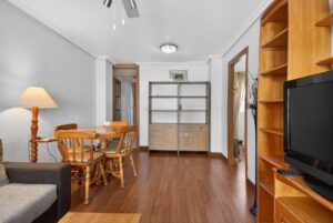 Mieszkanie w Torrevieja 600 m od plaży Acequión z windą Na sprzedaż mieszkanie w Torrevieja, położone na czwartym piętrze z windą, idealne zarówno jako stałe miejsce zamieszkania, jak i inwestycja. Nieruchomość składa się z 2 sypialni, 1 łazienki, oddzielnej kuchni oraz jasnego salonu z wyjściem na balkon od strony północnej, co zapewnia przyjemniejsze temperatury przez cały rok. Budynek posiada dostęp z rampą, co ułatwia wejście. Zlokalizowane zaledwie 600 metrów od plaży Acequión oraz w odległości spaceru od wszystkich udogodnień: supermarketów, restauracji, transportu publicznego i terenów rekreacyjnych. Komfortowa, dobrze położona okazja, gotowa do korzystania z śródziemnomorskiego stylu życia.