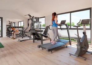 - 🏋️ Fully equipped gym with treadmill, bikes, multi-gym, free weights & stretching area