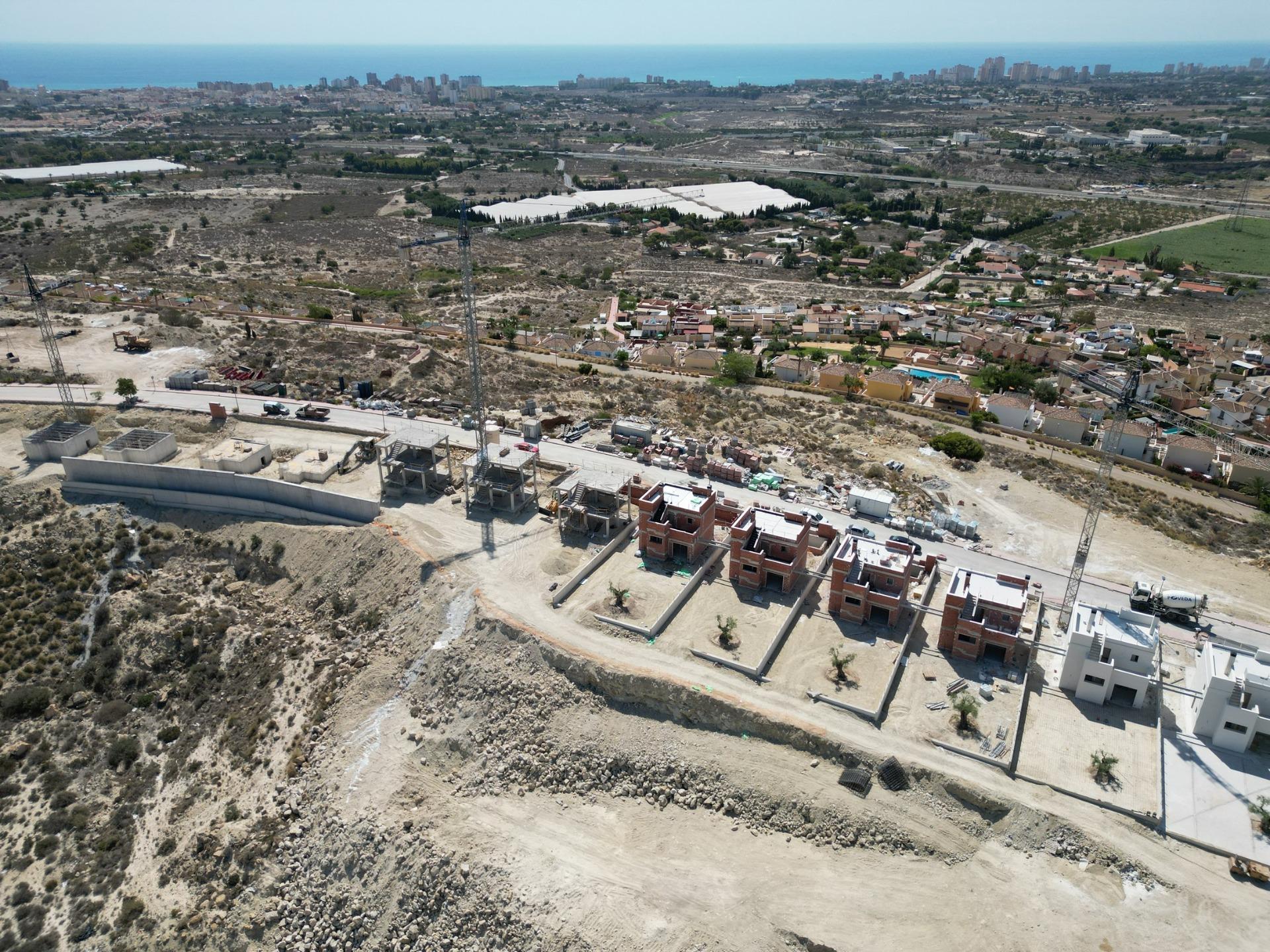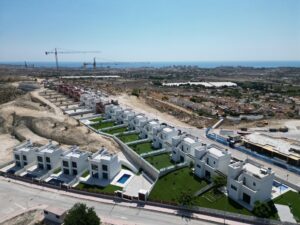 The houses consist of 2 floors and you also have access to the solarium with great views of the sea. On large plots of around 550 m2. Its elevated location offers wonderful open views of the mountains, the city of Alicante and the sea.