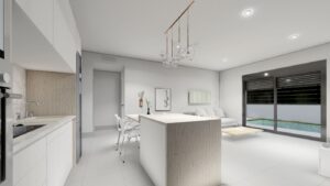 Designed with a contemporary style and open planned concept, comprising a fully-fitted kitchen and lounge-dining room.