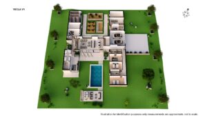 Different distribution models are offered, although it is also possible to make a totally personalized design. The standard models present a spacious house on one floor with 6 bedrooms, 5 bathrooms, open spaces full of life, where the "interior" and the "exterior" merge perfectly and natural light dominates.