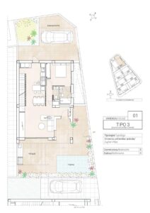 Villas composed over two floors and basement with English courtyard, has 3 bedrooms, 3 bathrooms, guest toilet, open plan kitchen with the lounge area, fitted wardrobes, terrace and private solarium.