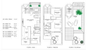 The houses consist of 2-3 bedrooms, 3 bathrooms, living room and separate kitchen, 2 terraces on the ground floor, one terrace on the 2nd floor and a solarium on the roof.