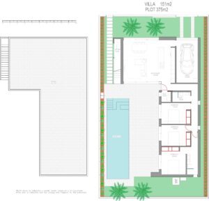 Modern villas has 3 bedrooms, 3 bathrooms, open plan kitchen with living area, terrace, solarium, private garden with the pool and parking space.