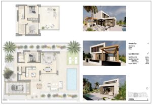 New Build villas build over 2 floors, has 3 bedrooms, 2 bathrooms, guest toilet, open plan kitchen with the lounge area, fitted wardrobes, private garden with the pool and off road parking space.