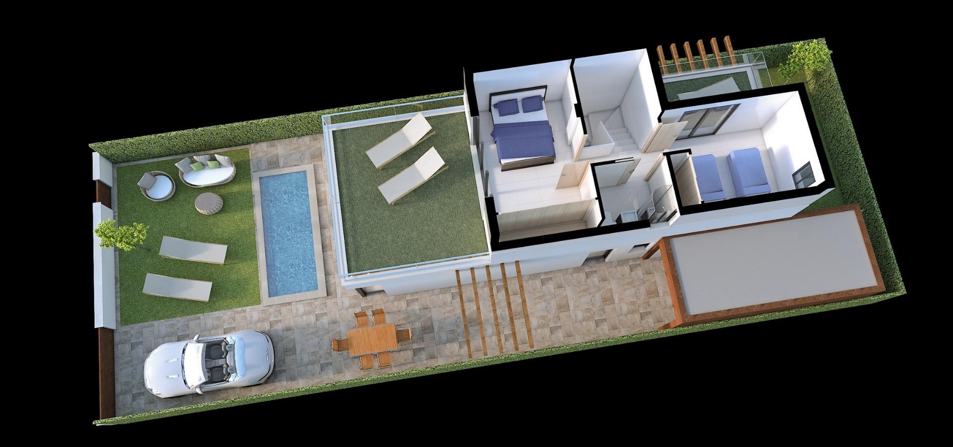 Residential of villas located 1 km from the beach and the town of Los Alcázares, where you can practice various water sports, surrounded by several golf courses.