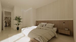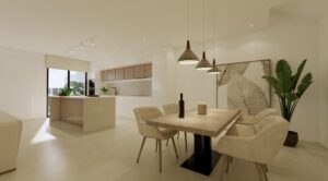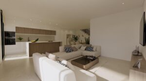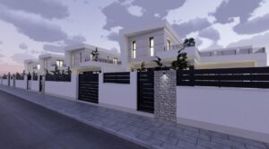 These modern two-story villas have been designed for comfort, functionality, and style. On the ground floor, you’ll find a bright open-plan kitchen connected to the living-dining area, with large sliding doors opening directly to the terrace and private garden with swimming pool. The ground floor also features one bedroom with an ensuite bathroom, a guest toilet, and a convenient outdoor laundry area.On the first floor, there are two additional bedrooms, a bathroom, and access to a large 60 m2 open terrace, perfect for sunbathing or relaxing while enjoying the Mediterranean climate. Each home includes private parking inside the plot.