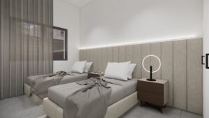 On the upper floor, there are two spacious bedrooms, each with its own bathroom, one of them en suite. Both bedrooms enjoy access to a private open terrace of 17 m². For those who want even more outdoor space, there is an optional rooftop solarium available at an additional cost.High Quality Finishes and Modern Features