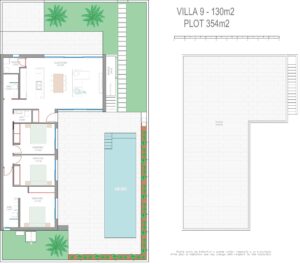 The development features stylish villas with 3 bedrooms and 2 bathrooms, available in two different built sizes of approximately 106 sqm and 130 sqm. The larger model also includes an additional guest toilet. All villas are designed on a single floor, offering practical and comfortable living. The open plan kitchen, dining and living area connects directly to a terrace and private garden with swimming pool, creating an ideal space for indoor and outdoor living. Each property also includes a private solarium and on plot parking.High Quality Finishes and Modern Equipment