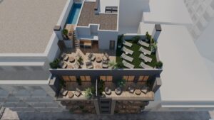 The apartments are built with high-quality materials and a strong focus on energy efficiency. The exterior aluminium joinery includes thermal break technology and double glazing for thermal and acoustic insulation. Motorised blinds add comfort and security. Each home has pre-installation for air conditioning and ducted heating, reinforced entrance doors, a lighting pack and white lacquered interior doors. Hot water is produced by an aerothermal system, reducing energy consumption and improving sustainability.Roof-top solarium with communal swimming pool