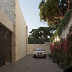 This modern villa is distributed across three carefully planned floors, combining functionality with refined aesthetics.The entrance level integrates a private garage, laundry area and technical room, ensuring that practical spaces are discreetly incorporated into the overall design.
