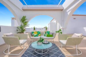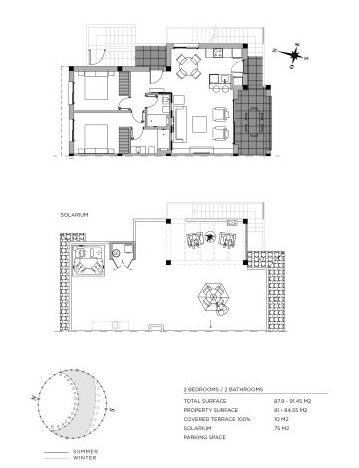 Na parterze znajdują się apartamenty z 2 sypialniami i 2 łazienkami z prywatnym ogrodem, a na piętrze z prywatnym tarasem na dachu.