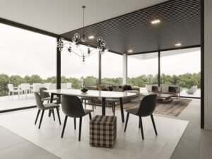 The orientation of the rooms and the presence of the large windows favor a permanent coexistence between the interior and exterior of the house, allowing the fusion of the environments and forming part of a single visual space.