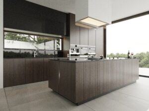 The kitchen equipment includes high-end appliances, natural stone and top quality furniture. Designer kitchen with Silestone, Granite or similar island with installation that includes the sink and the induction hob.