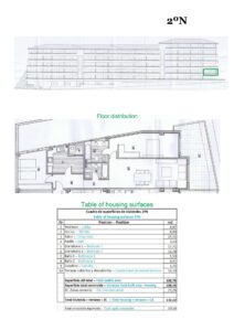 The building has 7 floors with 2 stairs and its 2 elevators. In the basement there are 69 parking spaces and 42 storage rooms. On the ground floor is the heated indoor pool, a large room for the use of all owners and two commercial premises, on the roof is the outdoor pool with its terraces.