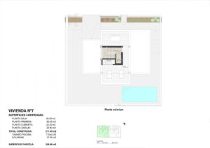 The villas feature a plot of 336m² or 338m², and a built area of 211m².The villas are built with three bedrooms; however it is also possible to build them with 4 bedrooms. One of the bedrooms is done with a completed bathroom. The kitchen is fully finished, with high quality materials chosen by the owner, including the appliances. Following an open concept, the dining room is surrounded with large windows, providing a source of pleasant day light, with direct access to the swimming pool and finished gardens with illumination, irrigation and local vegetation.