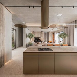 The villa is distributed across three levels connected by a private elevator, ensuring maximum comfort and accessibility. The main living area is a bright open space where the living room, dining area and designer kitchen flow together naturally.